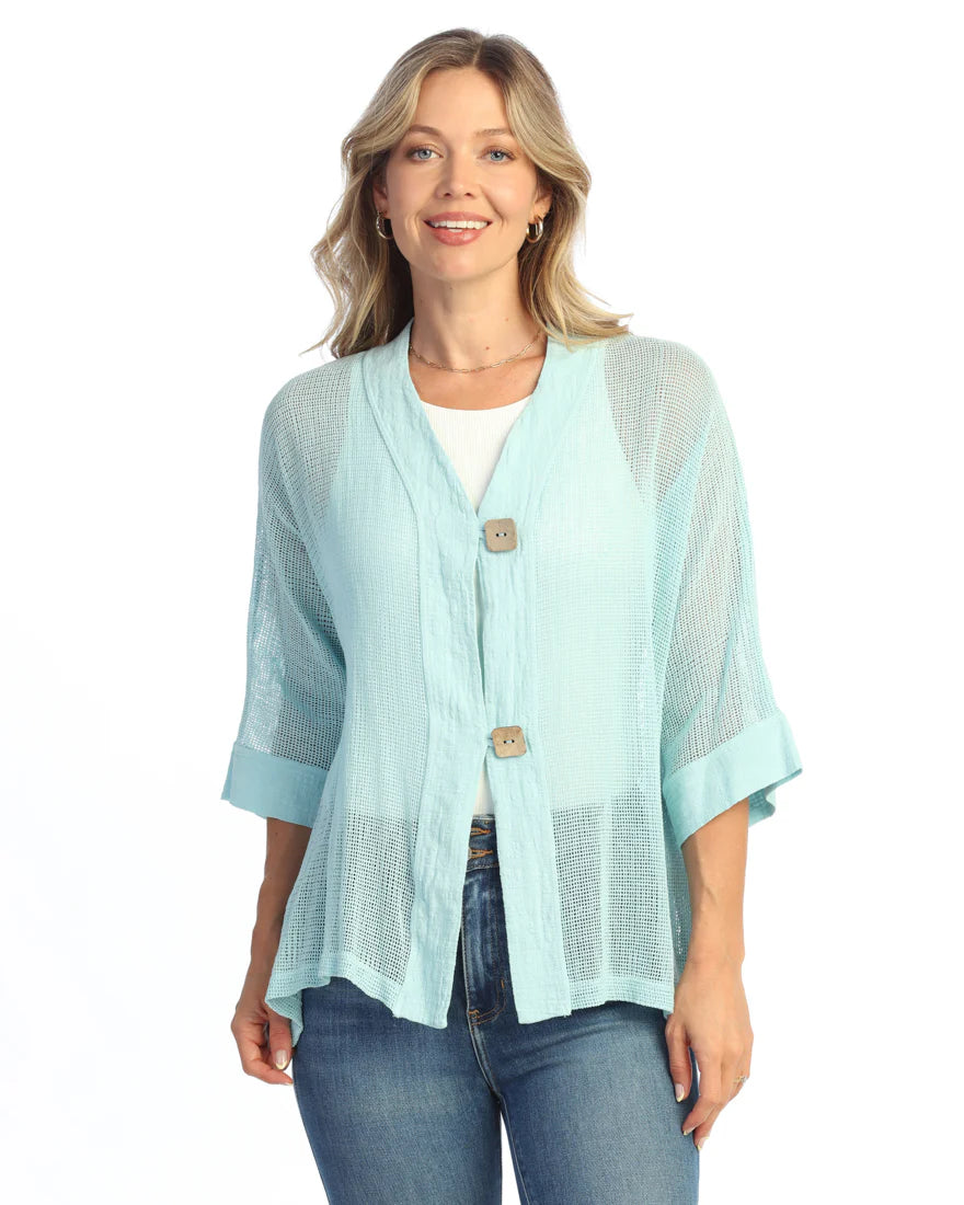 Mineral Washed Flounce Hem Mesh Cardigan With 2-Button Closure