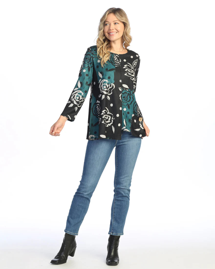 FRENCH BRUSHED KNIT TUNIC TOP WITH PATCH POCKET AND BUTTON (MEDIUM WEIGHT)