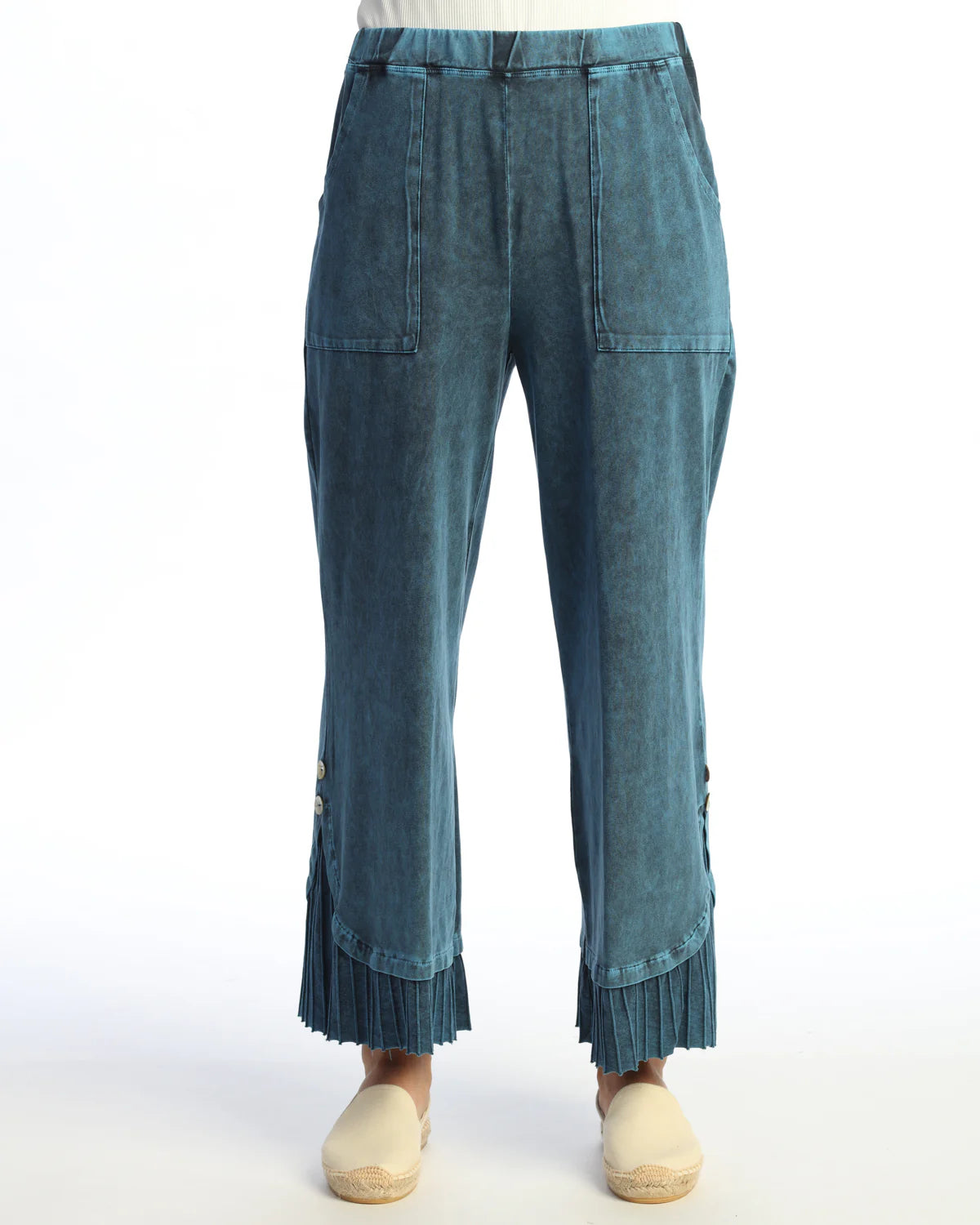 MINERAL WASHED WIDE LEG PANT WITH FAT RIB CONTRAST AND BUTTON ACCENT