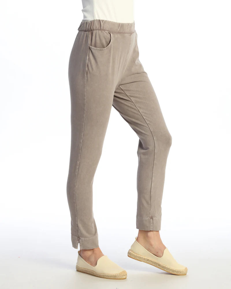 MINERAL WASHED SLIM PANT WITH SCOOP POCKETS AND SPLIT ANKLE HEM