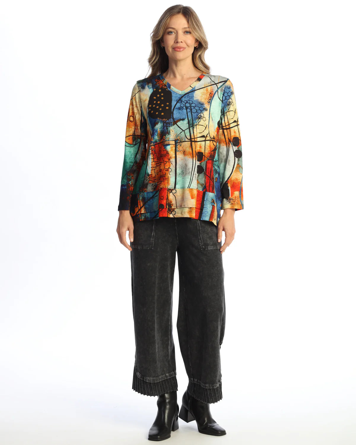 COTTON MODAL V-NECK TOP WITH OVERLAP HEM (PRINT PLACEMENT MAY VARY)