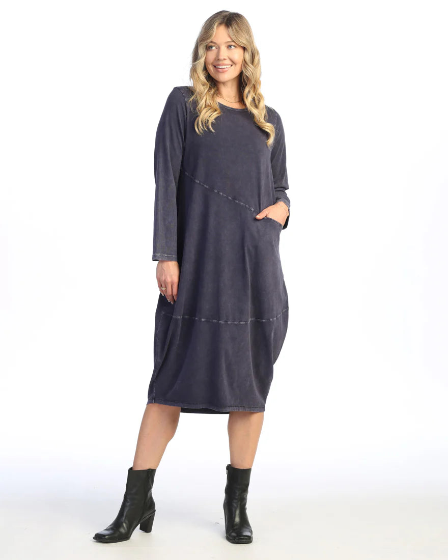 MINERAL WASHED COTTON SPANDEX FLUID COCOON DRESS WITH POCKET