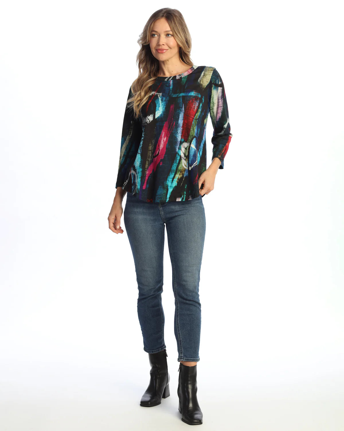 COTTON MODAL ROUND NECK TOP WITH 3/4 SLEEVES (PRINT PLACEMENT MAY VARY)