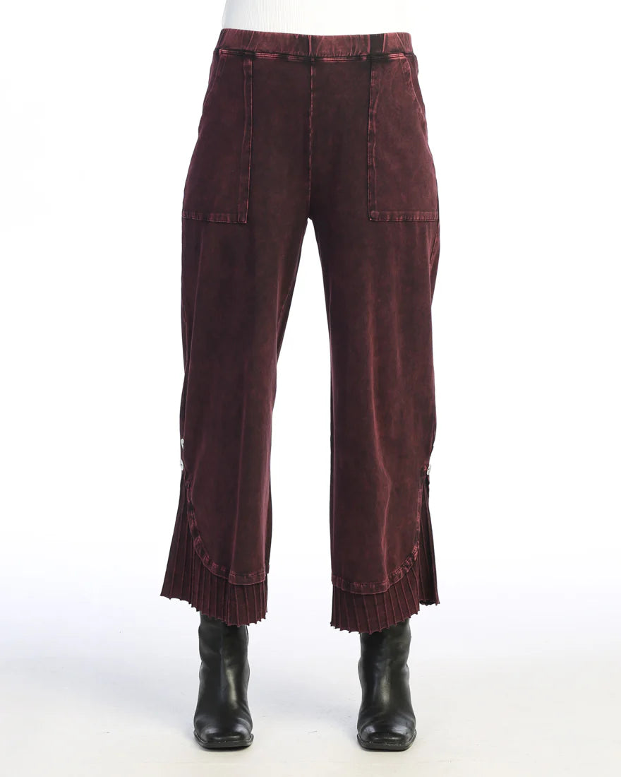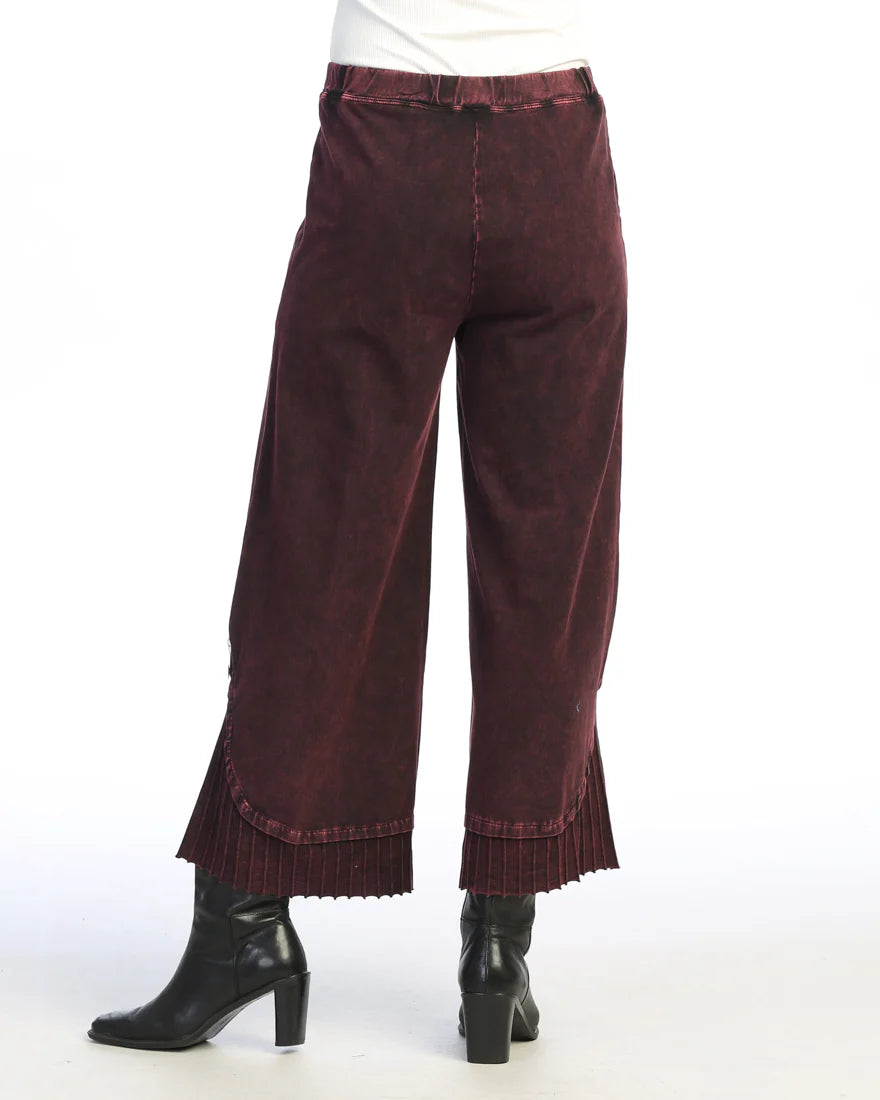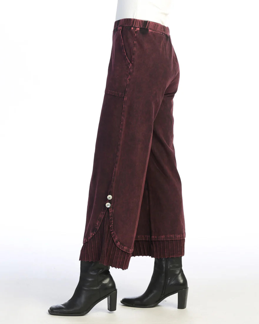MINERAL WASHED WIDE LEG PANT WITH FAT RIB CONTRAST AND BUTTON ACCENT