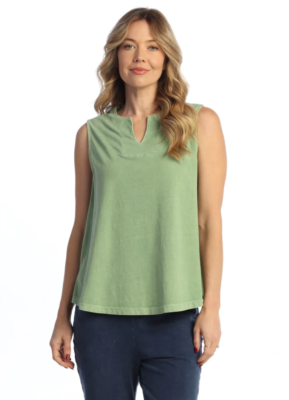 SLEEVELESS COTTON JERSEY TOP WITH NOTCH NECK AND SIDE SLIT