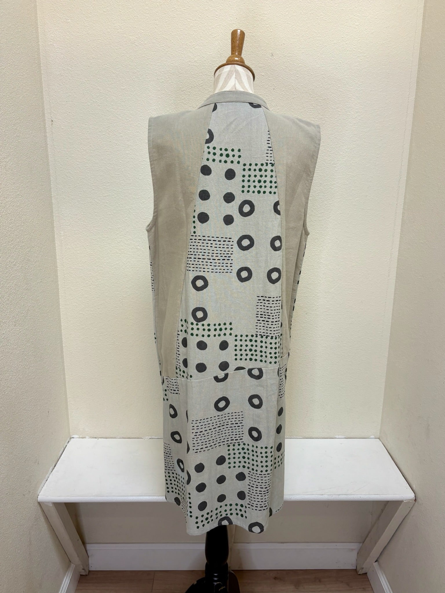 This light brown long vest boasts a stylish multi-dots print, making it a versatile and eye-catching addition to any wardrobe.