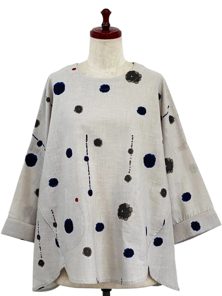 MONA LISA by Pure Fit - 253201-LG - Flare Pullover - Drops Print - Light Grey (B)