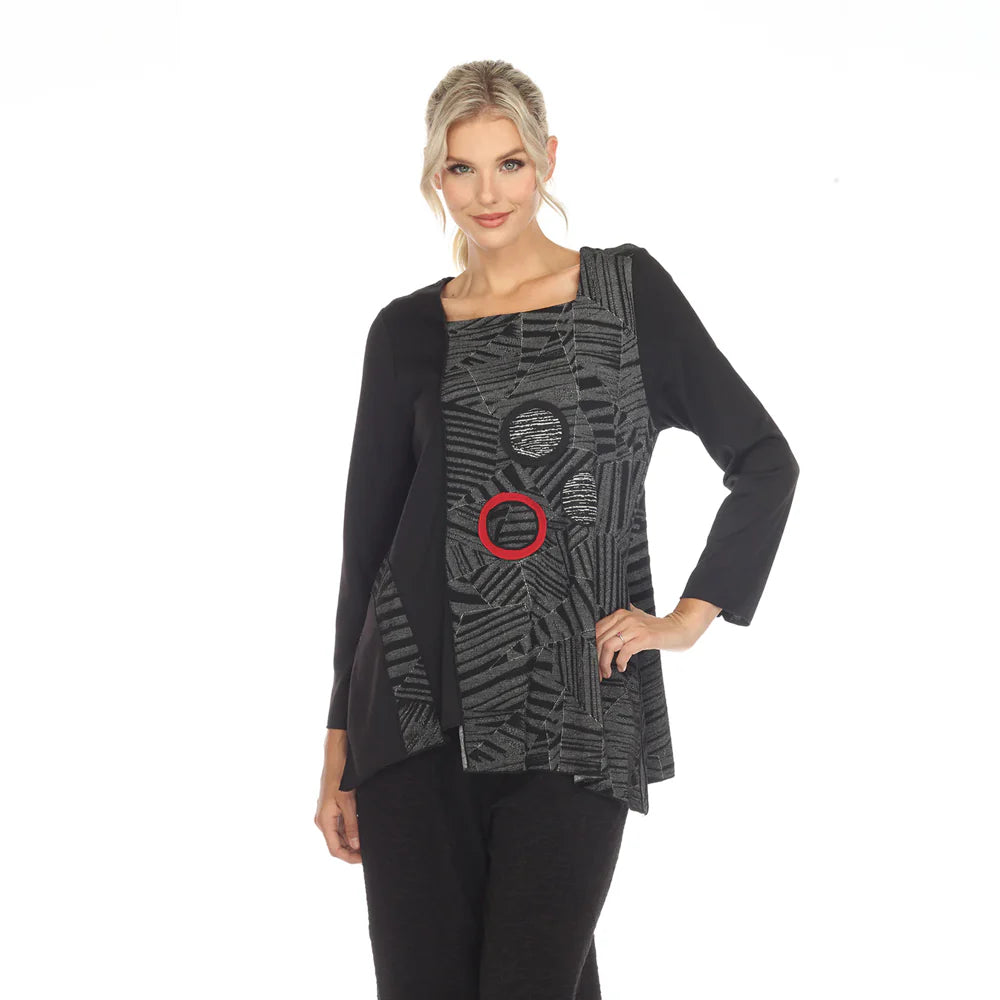 Elevate your wardrobe with the Moonlight Top in sleek black. This abstract-designed piece offers a sophisticated silhouette perfect for both day and evening wear. Crafted for comfort and style, it pairs effortlessly with tailored trousers or a chic skirt, making it an essential addition for a polished, contemporary look.