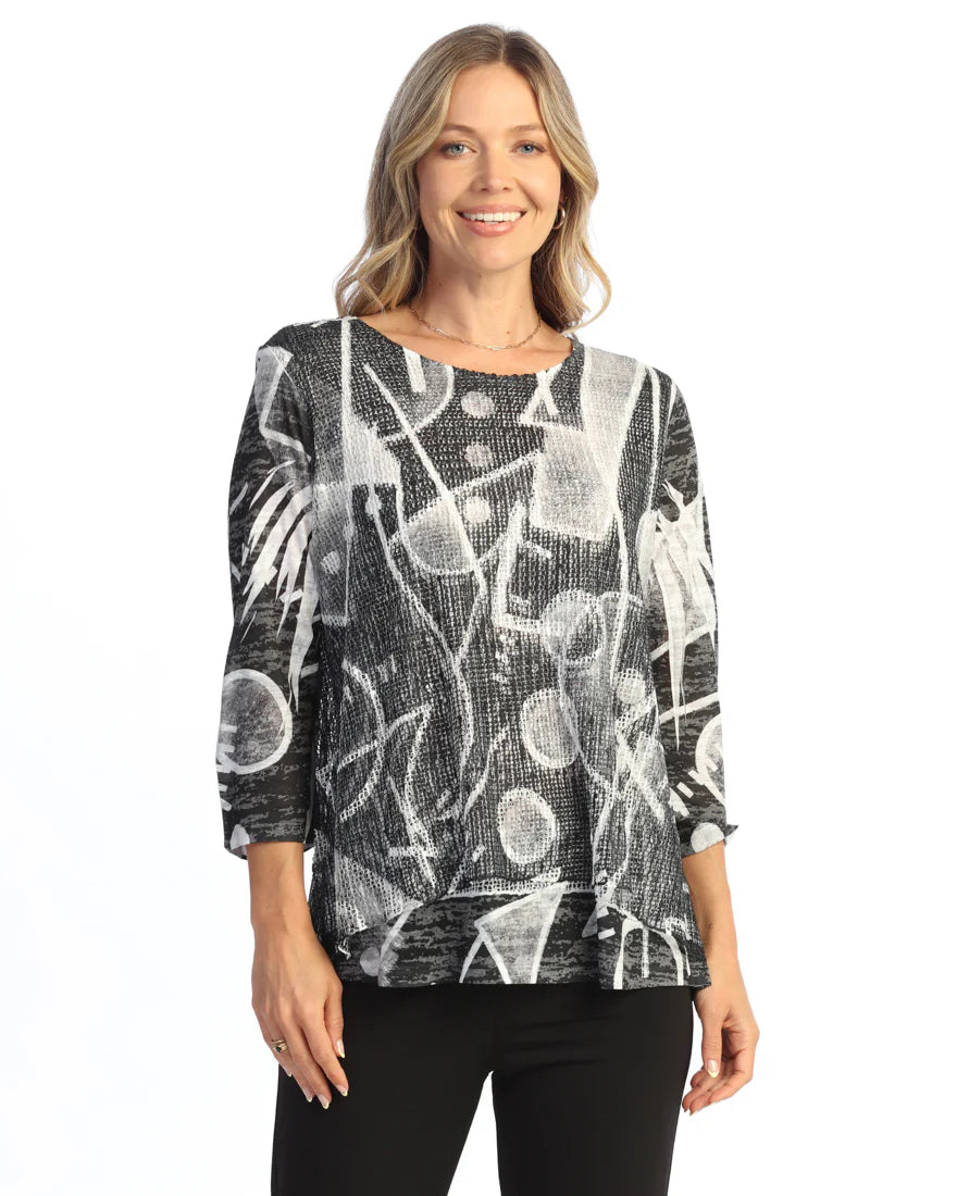 LAYERED BOUCLE MESH TUNIC TOP W/ BURNOUT LINING