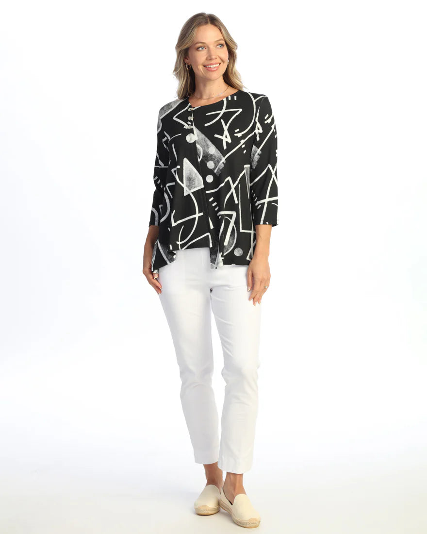 ITY ASYMMETRIC NECK FAUX WRAP TOP WITH BUTTONS