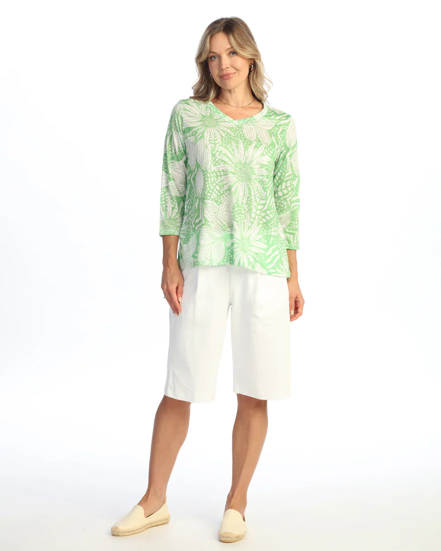 V-NECK 3/4 SLEEVE SIDE SLIT TOP