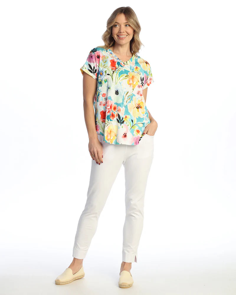 COTTON MODAL EASY FIT SHORT SLEEVE V-NECK TOP