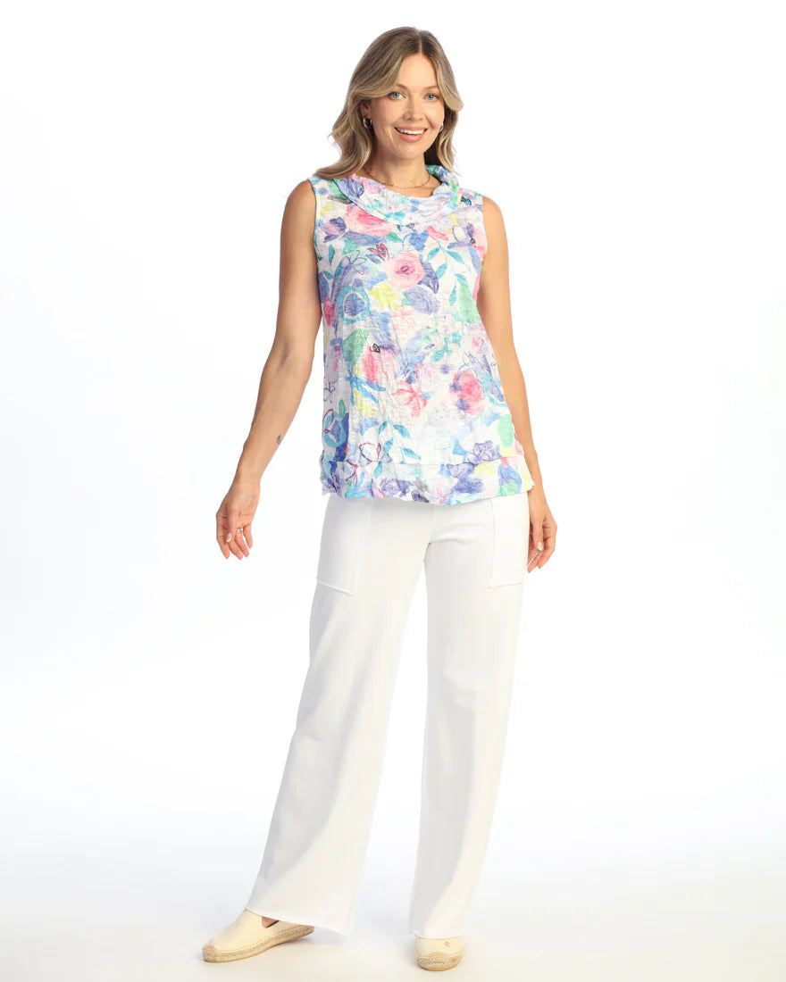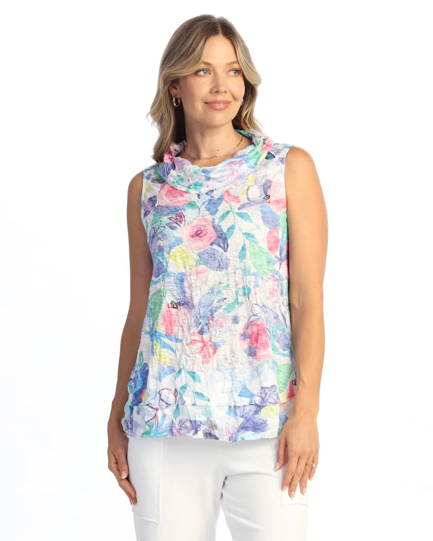CRUSHED COWL NECK SLEEVELESS TOP WITH LAYERED HEM