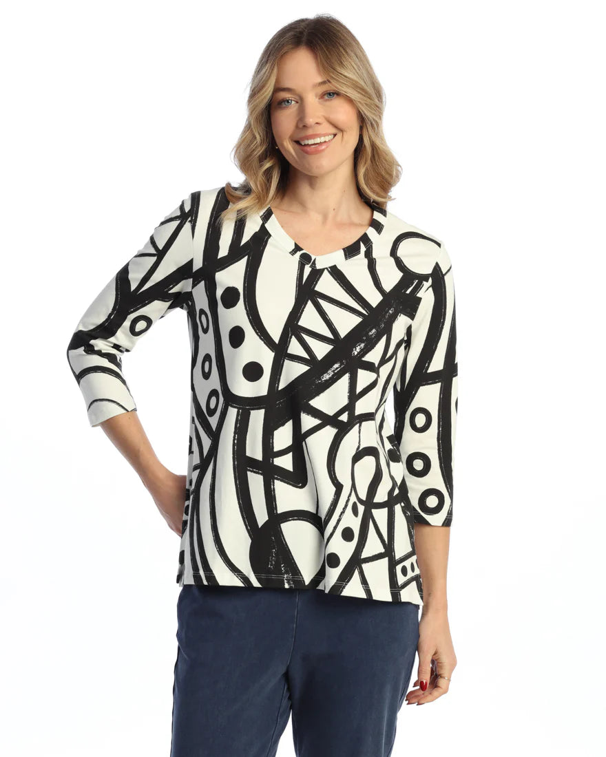 COTTON SPANDEX V-NECK TOP WITH SIDE SLITS