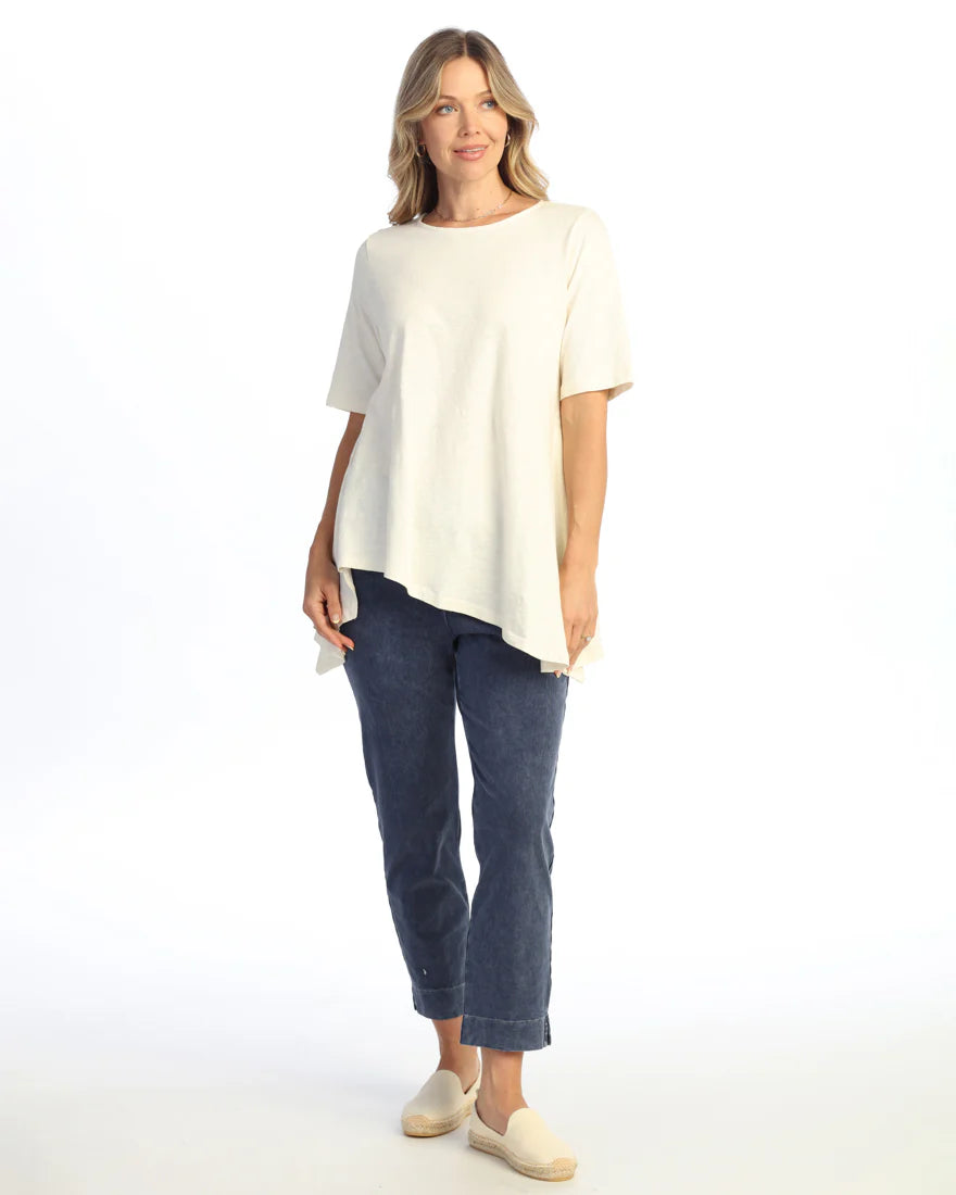 MINERAL WASHED 100% COTTON SLUB ASYMMETRIC HEM TOP