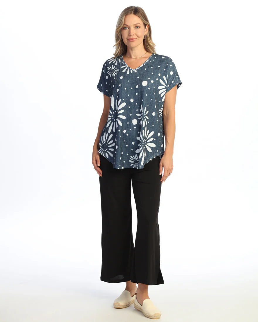CRINKLE DOLMAN V-NECK TOP WITH ROUND HEM
