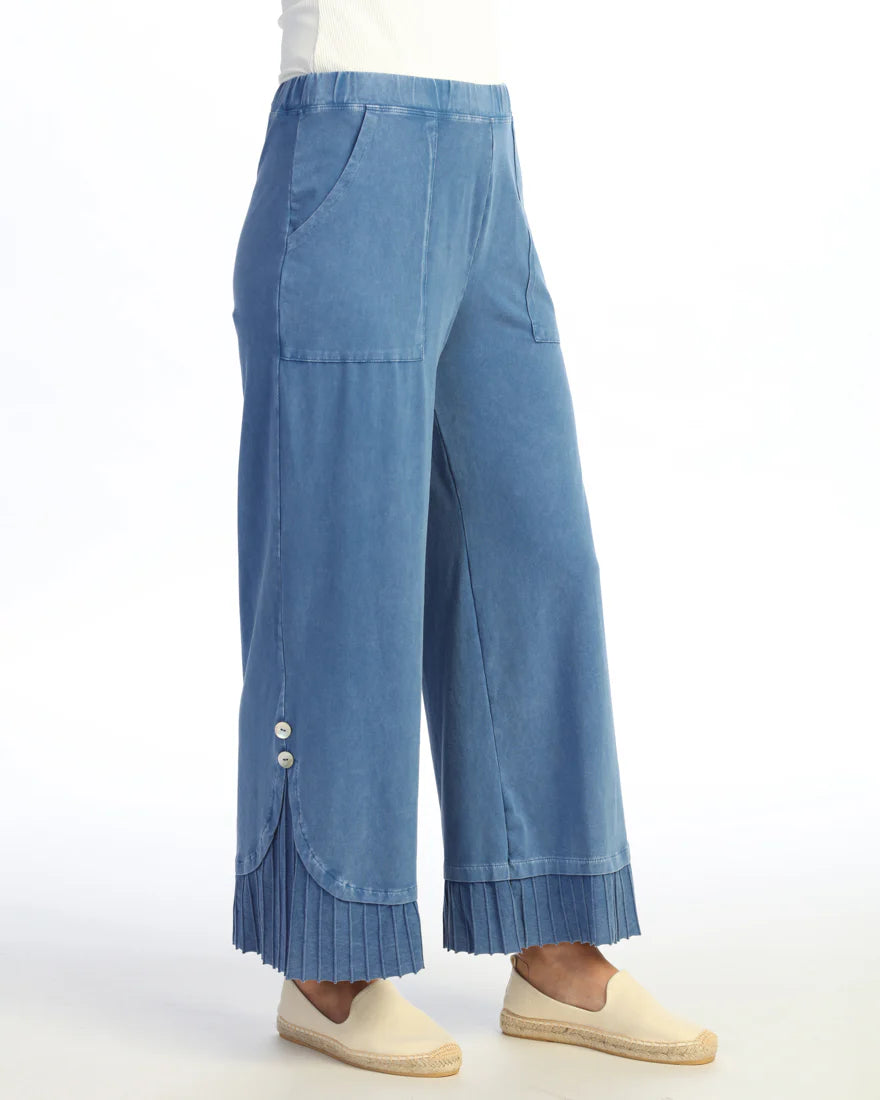 MINERAL WASHED WIDE LEG PANT WITH FAT RIB CONTRAST AND BUTTON ACCENT