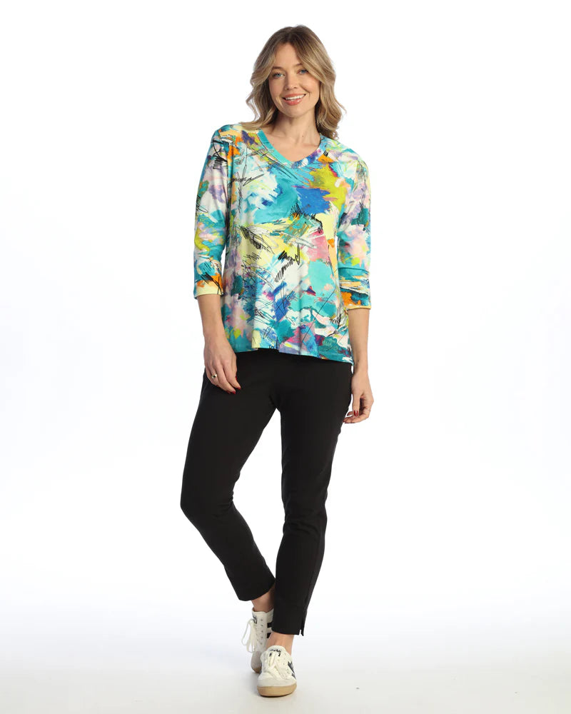 COTTON SPANDEX V-NECK TOP WITH SIDE SLITS