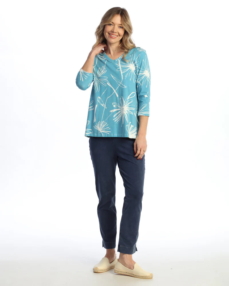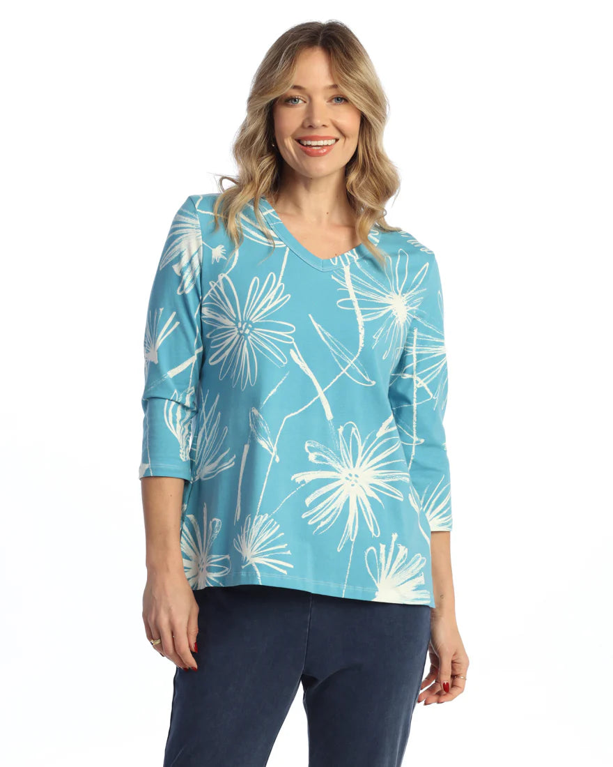COTTON SPANDEX V-NECK TOP WITH SIDE SLITS