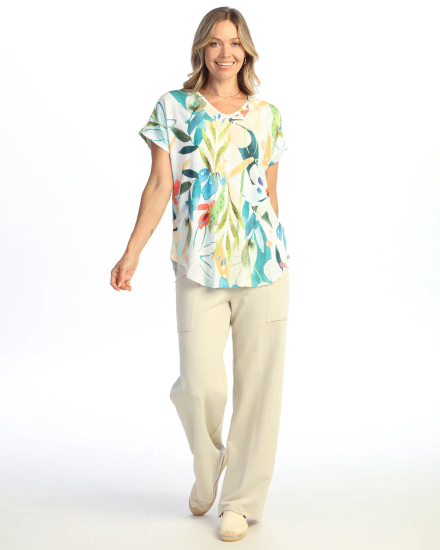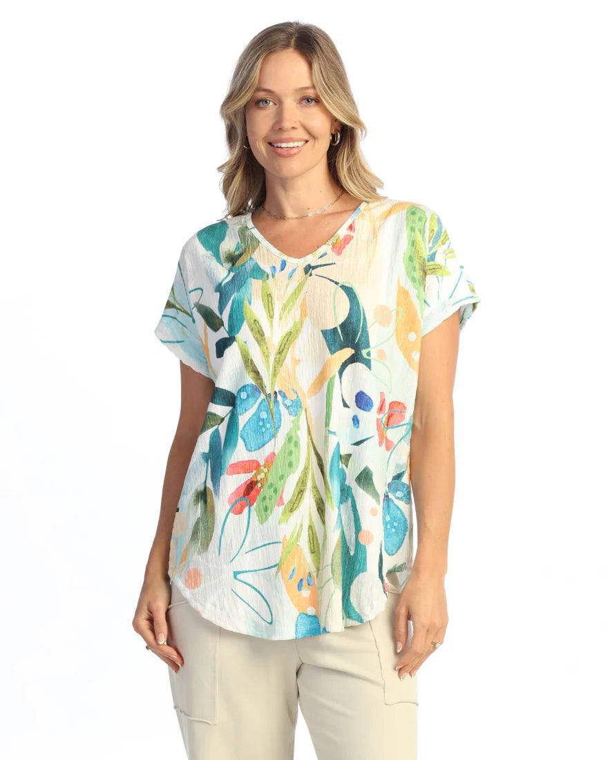 CRINKLE DOLMAN V-NECK TOP WITH ROUND HEM