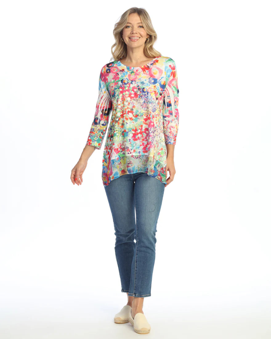 TUNIC TOP WITH FLOWY CHIFFON CONTRAST