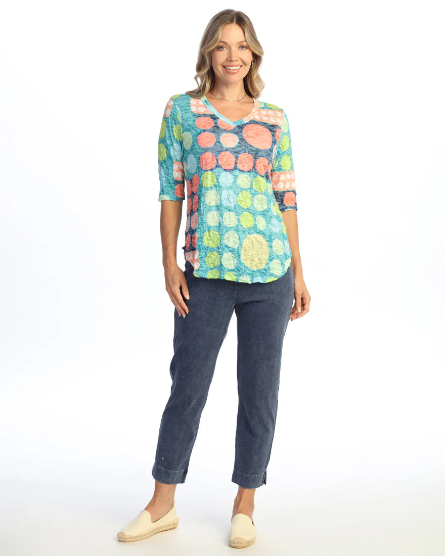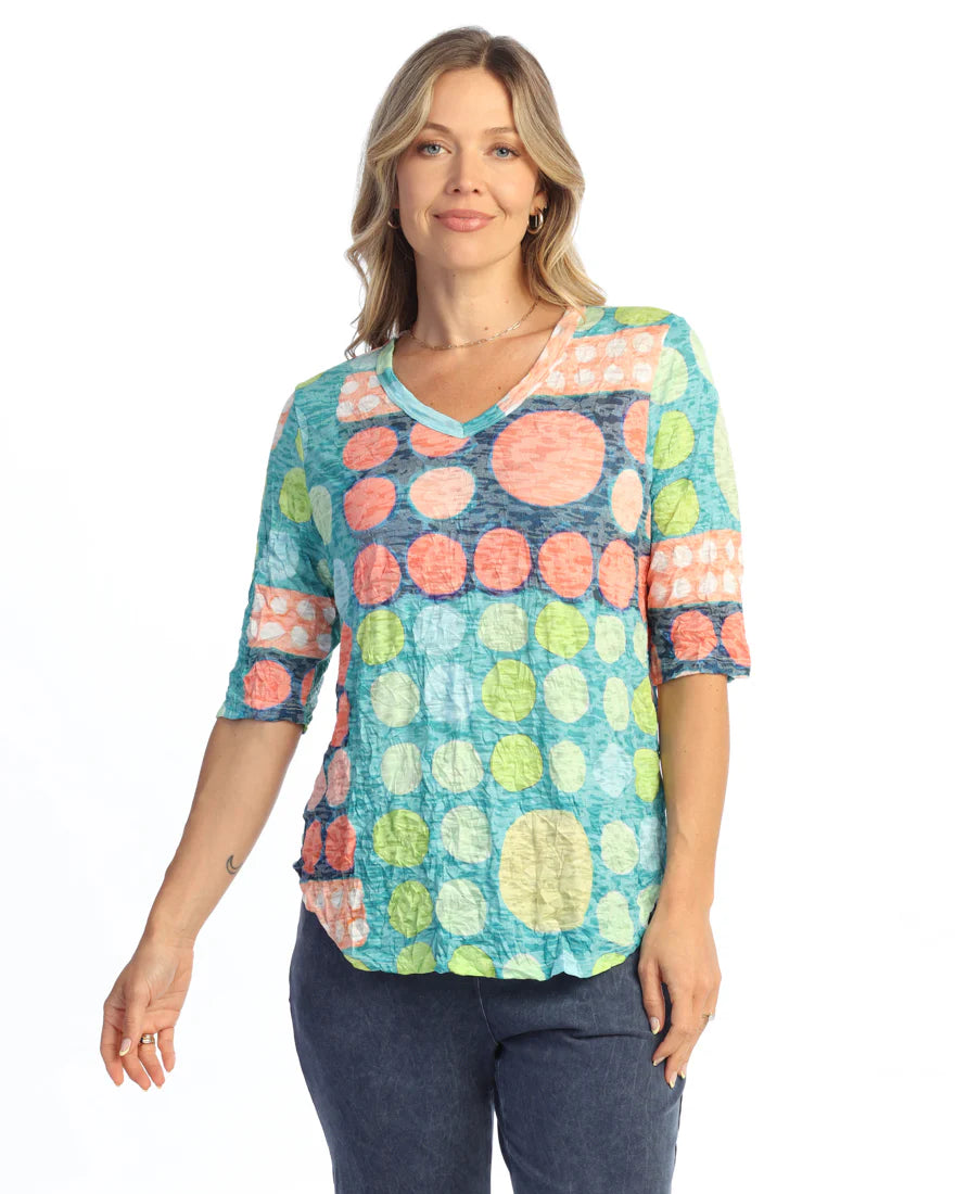 CRUSHED V-NECK HALF SLEEVE TOP WITH ROUND HEM