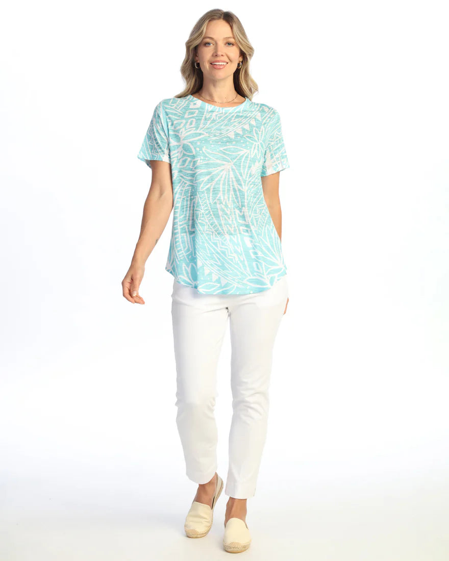 BURNOUT SHORT-SLEEVE ROUND-HEM TOP