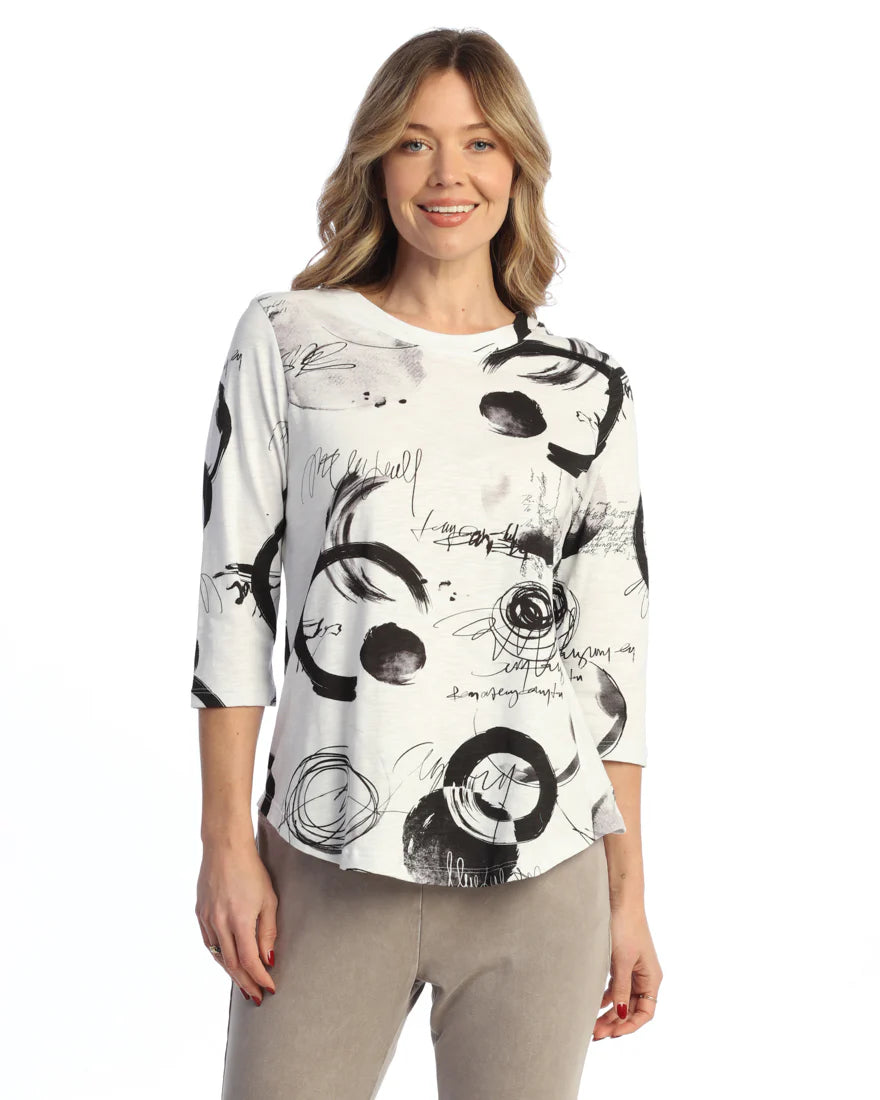 COTTON MODAL ROUND NECK TOP WITH 3/4 SLEEVES