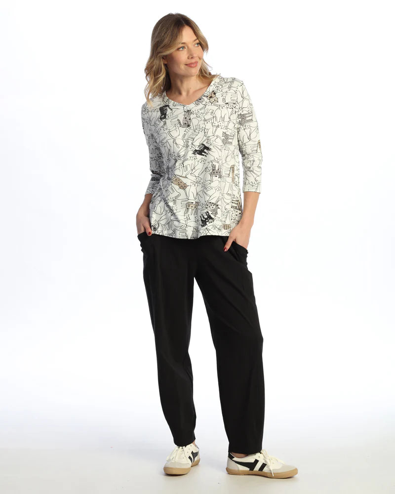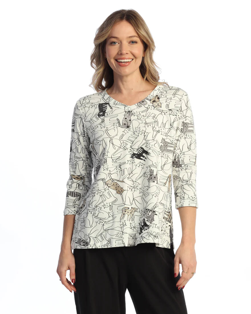 COTTON SPANDEX V-NECK TOP WITH SIDE SLITS