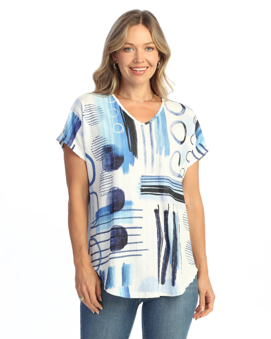 CRINKLE DOLMAN V-NECK TOP WITH ROUND HEM