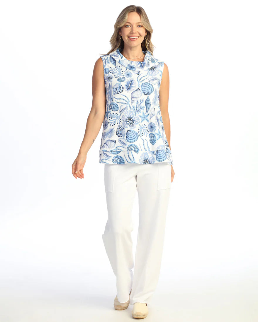 CRINKLE COWL NECK SLEEVELESS TOP WITH LAYERED HEM