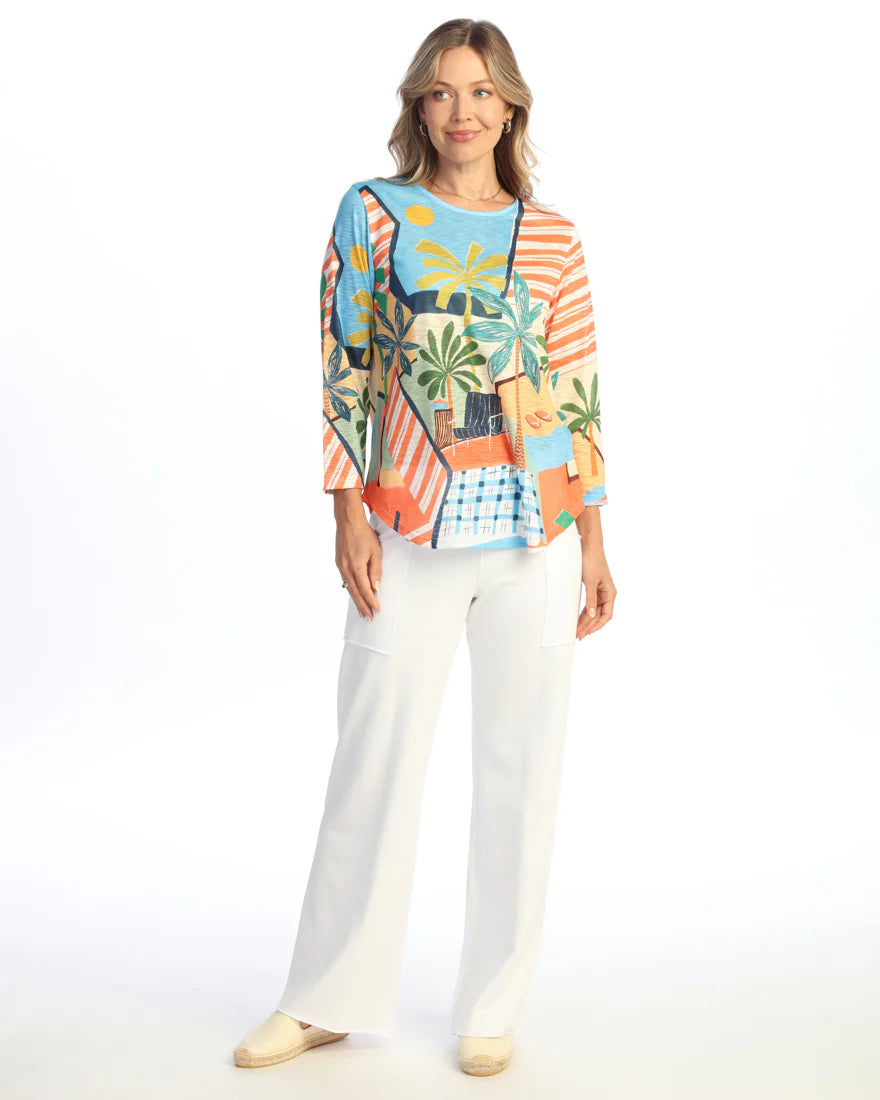 ROUND HEM 3/4 SLEEVE SLUB TOP