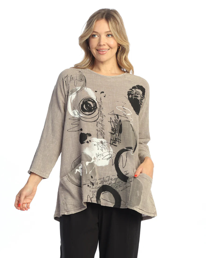 MINERAL WASHED GAUZE TUNIC TOP W/ PATCH POCKETS