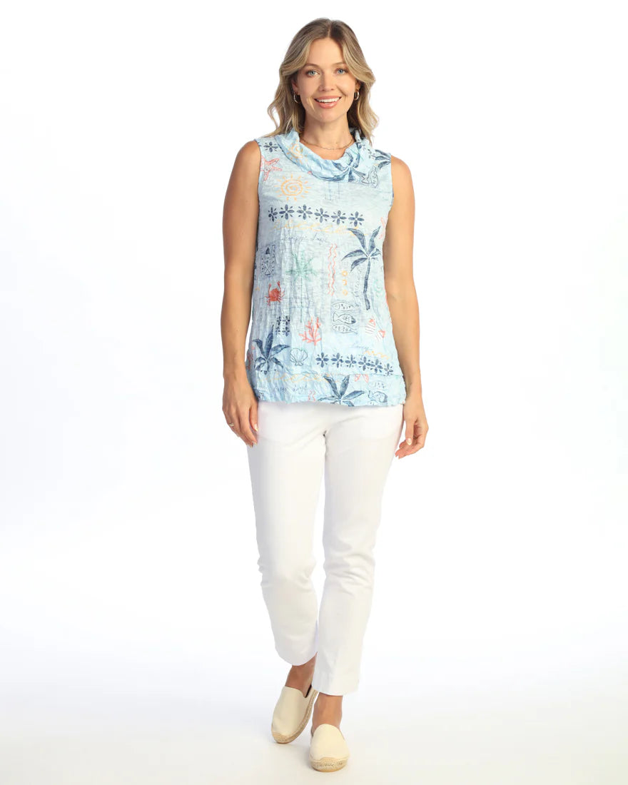 CRUSHED COWL NECK SLEEVELESS TOP WITH LAYERED HEM