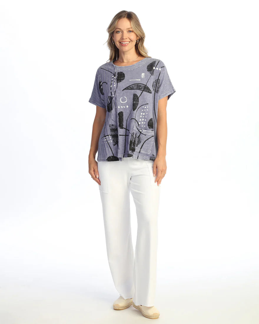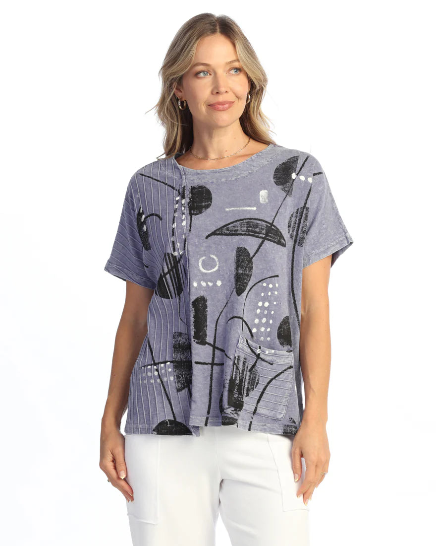 GARMENT DYED 100% COTTON SHORT-SLEEVE TOP W/ FAT RIB CONTRAST AND POCKET