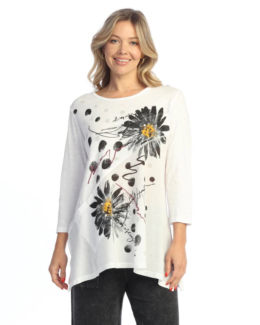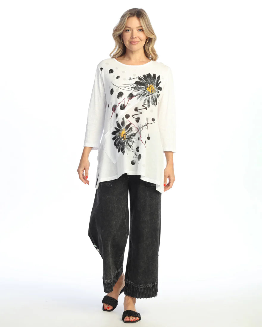MINERAL WASHED 100% COTTON TUNIC TOP W/ ASYMMETRIC LINEN CONTRAST AND PATCH POCKET