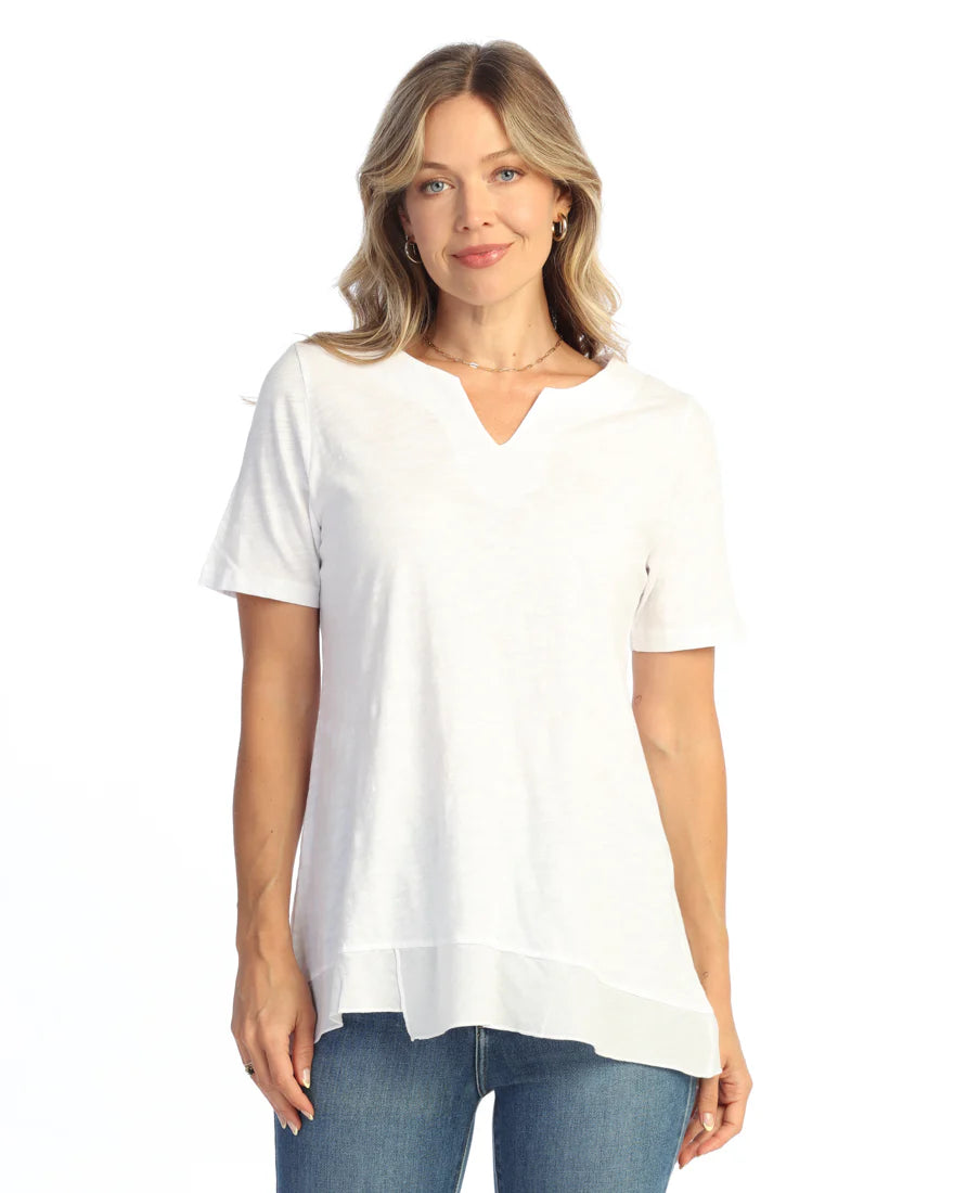 MINERAL WASHED 100% COTTON NOTCH NECK TOP WITH COTTON LINEN HEM