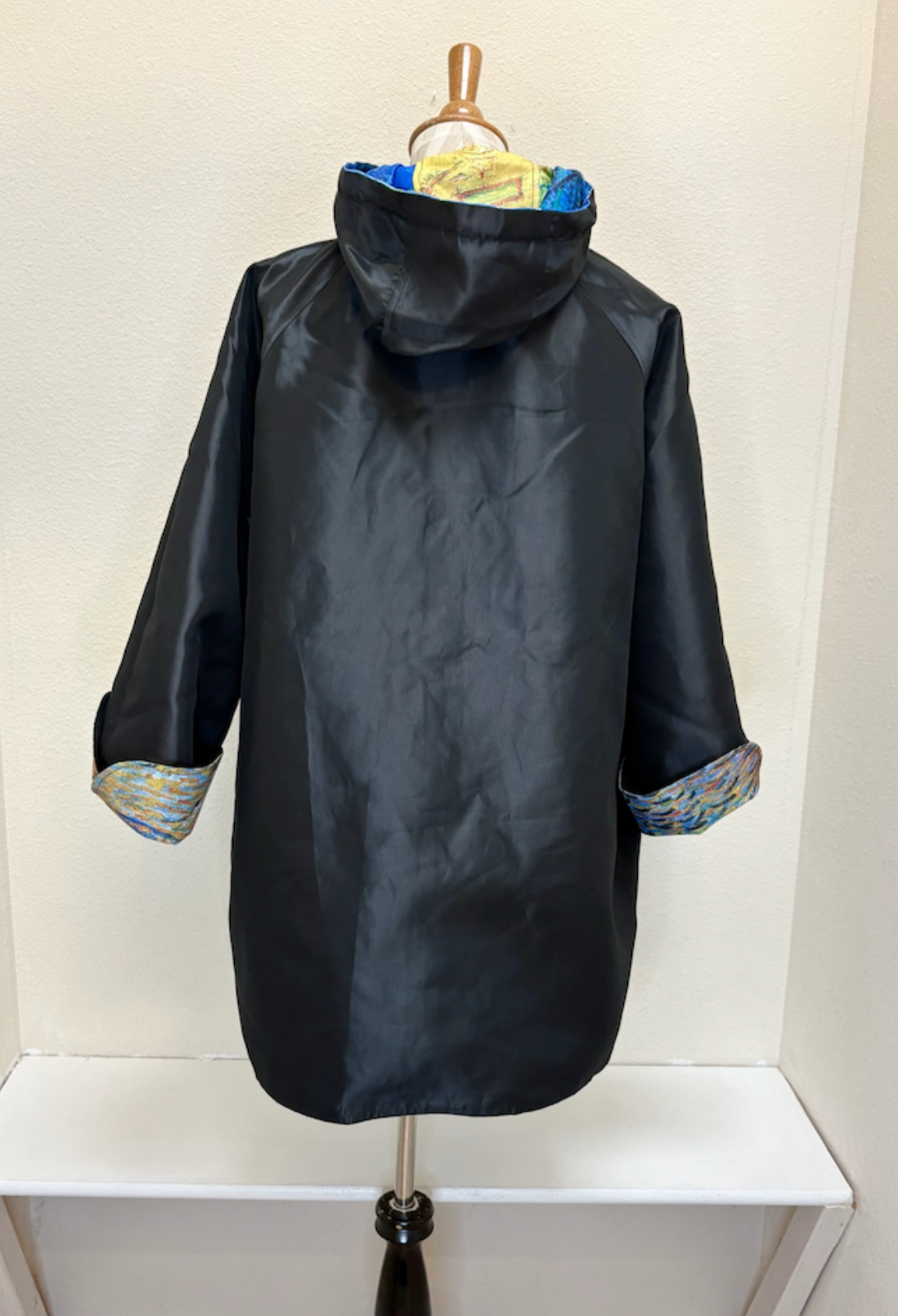 Oopera raincoats are reversible. One side is a fun artistic print and the other side is a solid. It is truly the perfect year round coat you can wear over and over again. They are lightweight as well.