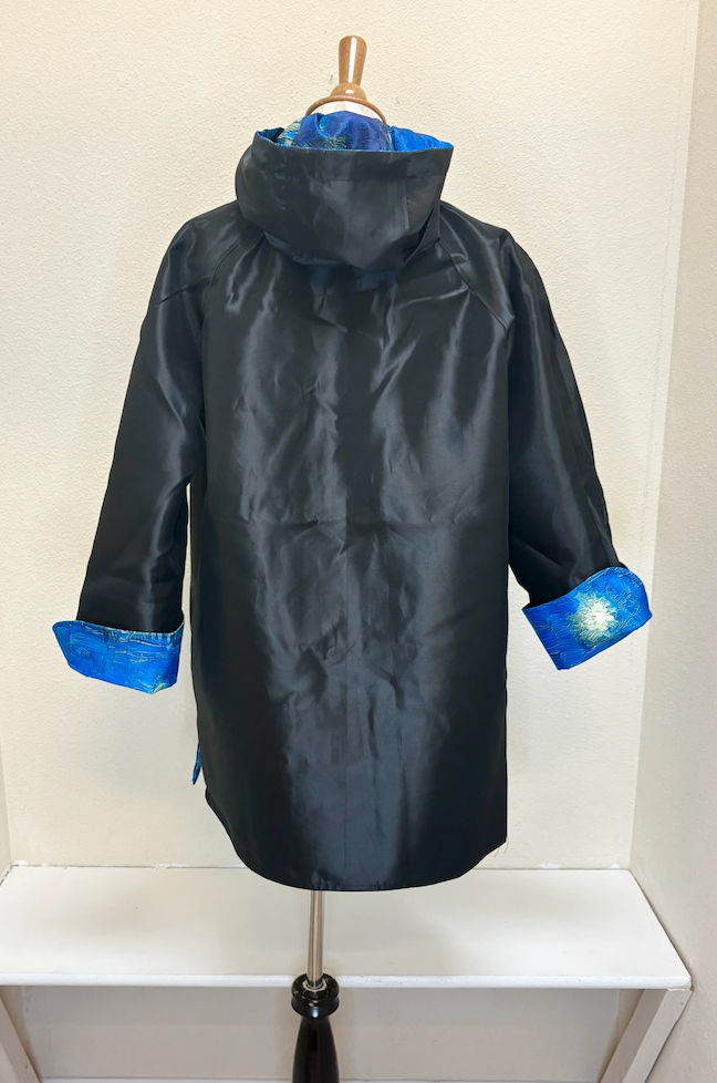 Oopera raincoats are reversible. One side is a fun artistic print and the other side is a solid. It is truly the perfect year round coat you can wear over and over again. They are lightweight as well.