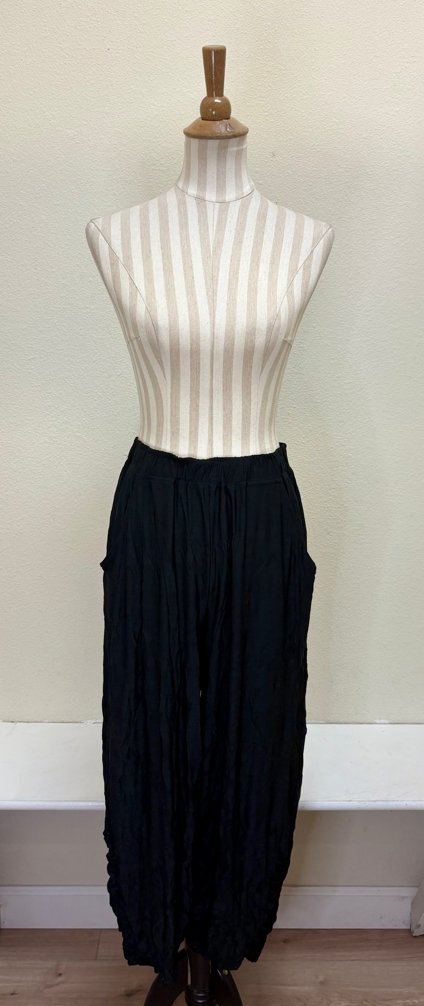 Shana Solid Crush Pants - 24075S - BLACK