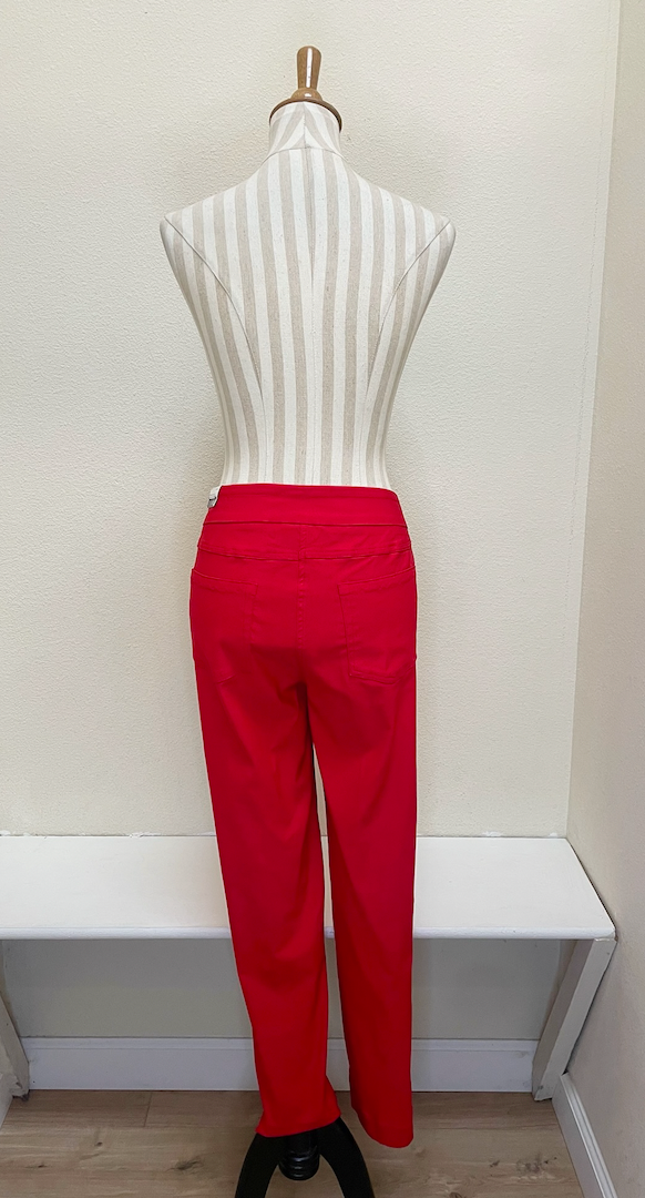 Slimsation ANKLE Women's Pull On Solid Fine Line Twill Pant With Real Pockets (M30719PM) - RED