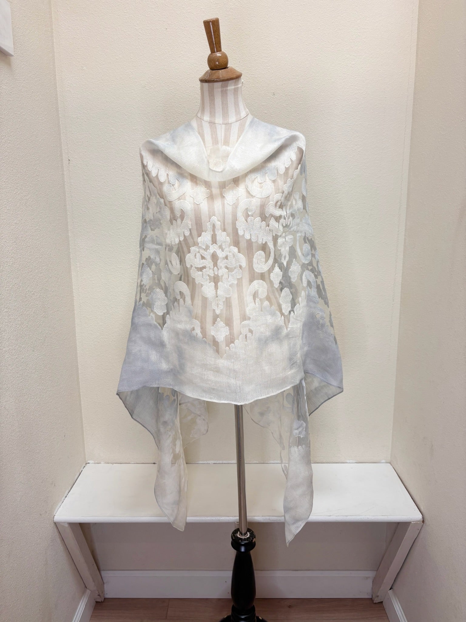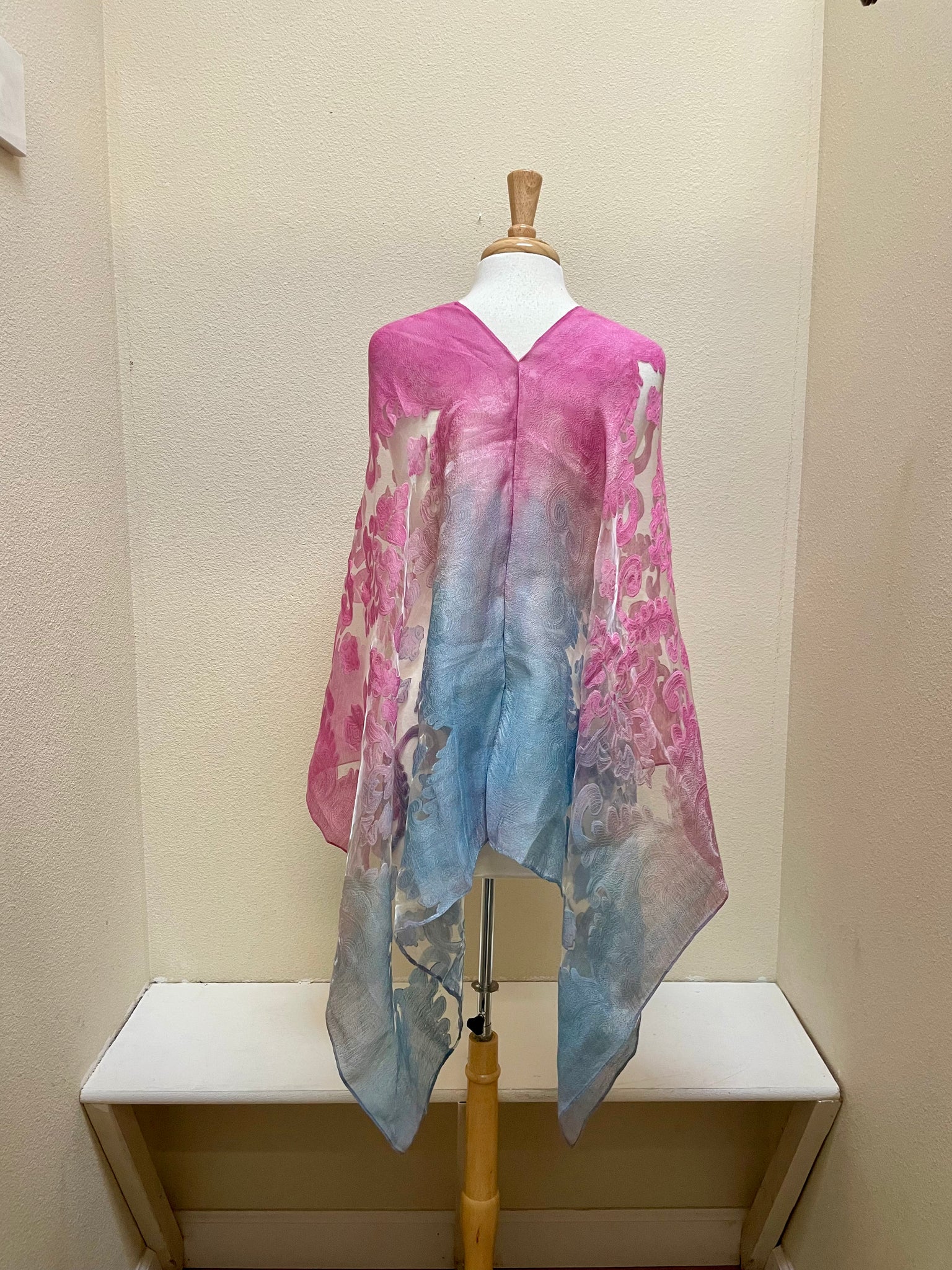 By creating their own mix of natural dyes and color combinations on this wonderful burnout poncho, this Spain in America piece is light and unique for any season!