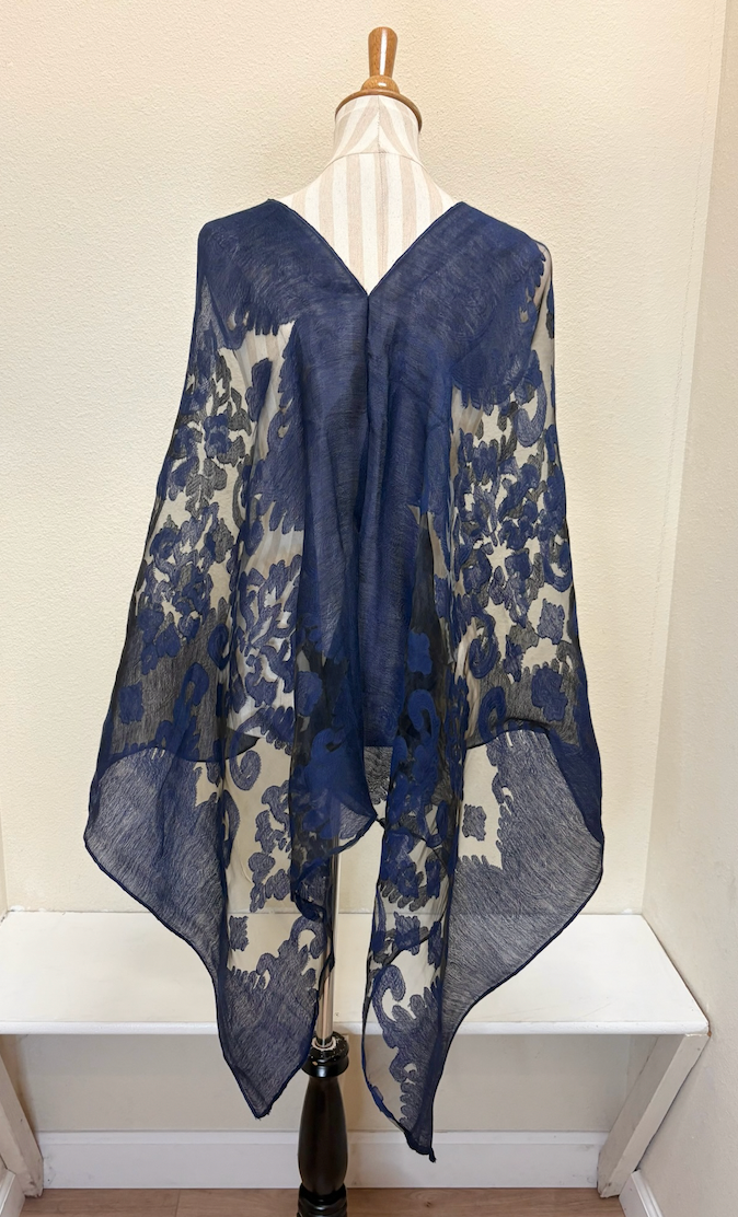 By creating their own mix of natural dyes and color combinations on this wonderful burnout poncho, this Spain in America piece is light and unique for any season!