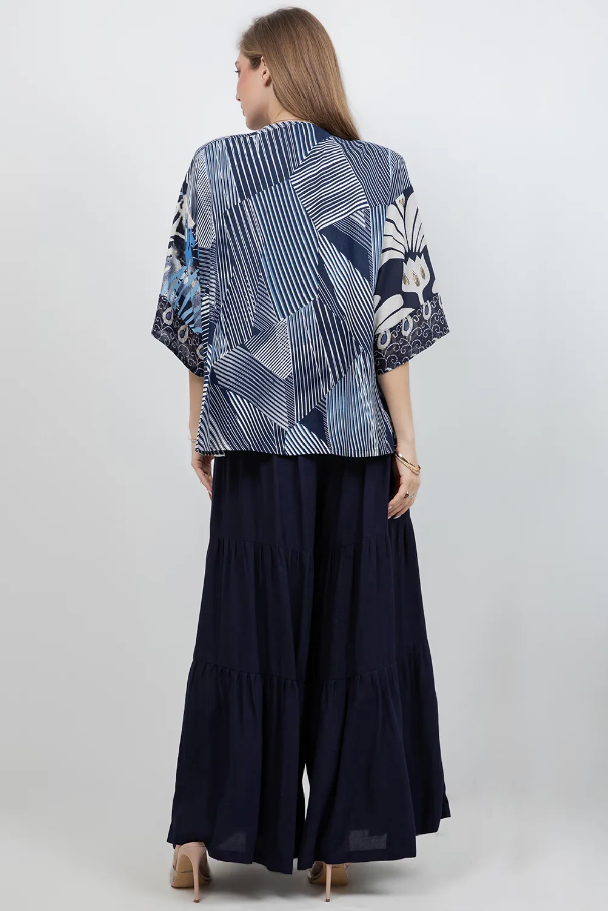Sleeve Length: (from center back neck to sleeve hem) – 22″