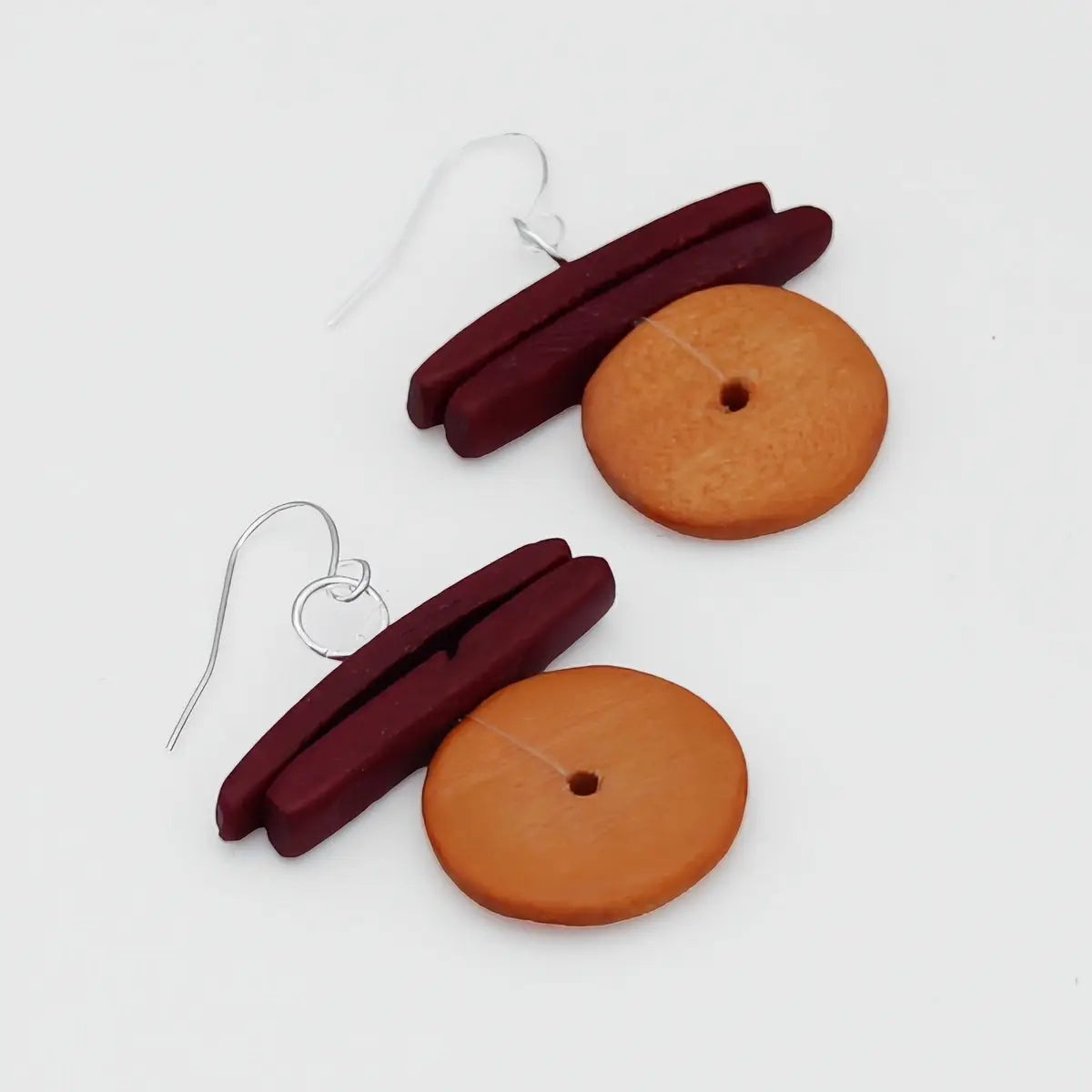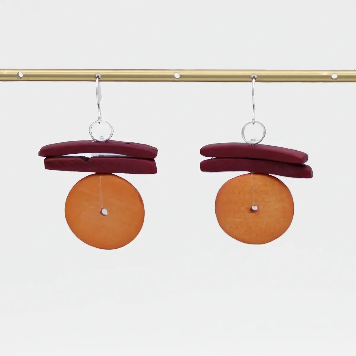 Liven up your look with these playful Orange Billie Dangle Earrings. Handcrafted with lightweight orange and brown wood beads, these dainty earrings are perfect for adding a touch of artistic flair to any outfit. Take a fashion risk with these quirky and fun earrings.