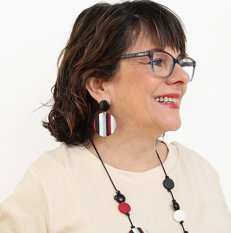 An earring must have for your jewelry box! Made of resin, these round earrings feature stripes in everyone’s favorite color palette; white, black, grey, and red. Hung from a black stud, these earrings will go with everything. These earrings can easily be worn alone or with a coordinating necklace!