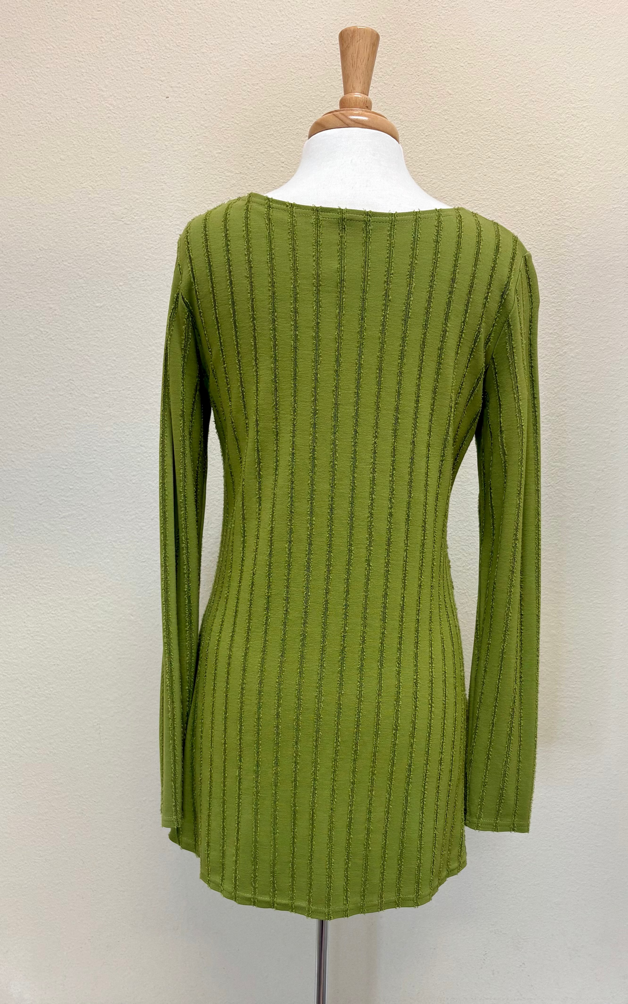 Cut Loose - your "go-to" pieces! A returning fabric and design! This frayed stripe V tee features a v-neck long sleeves, a hi-low hem and seam detail. Made from soft & comfortable viscose stretch, this piece will make a great addition to your fall wardrobe!