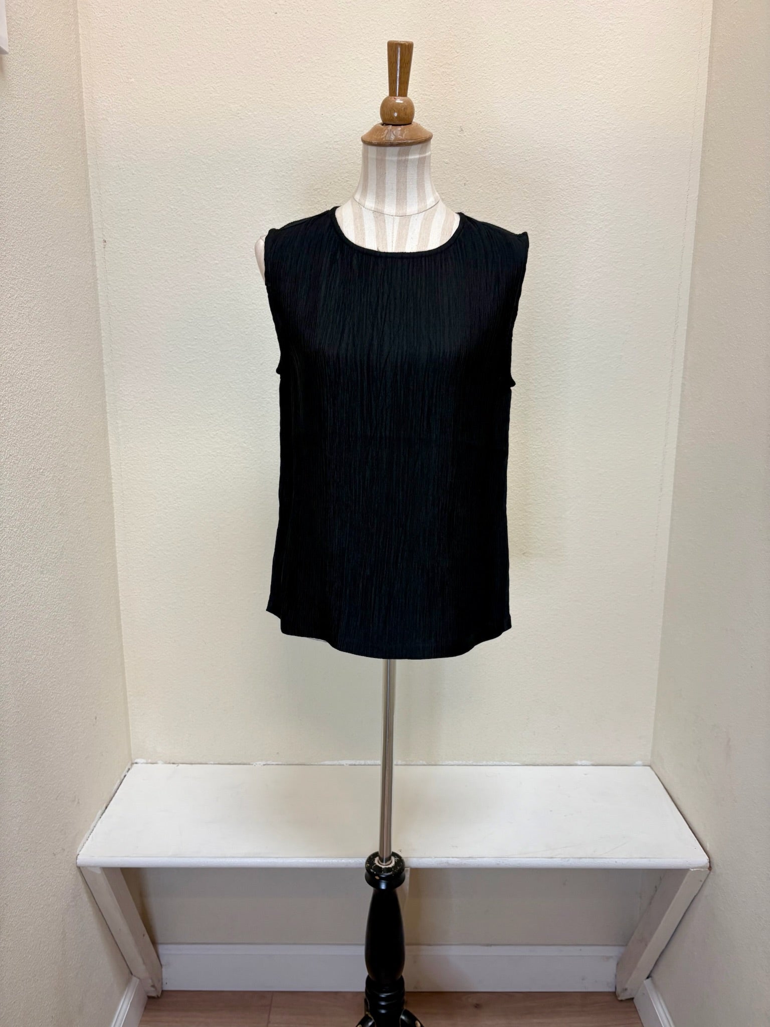 DAMEE CRINKLED SLEEVELESS JEWEL NECK TOP - 901T - BLK
