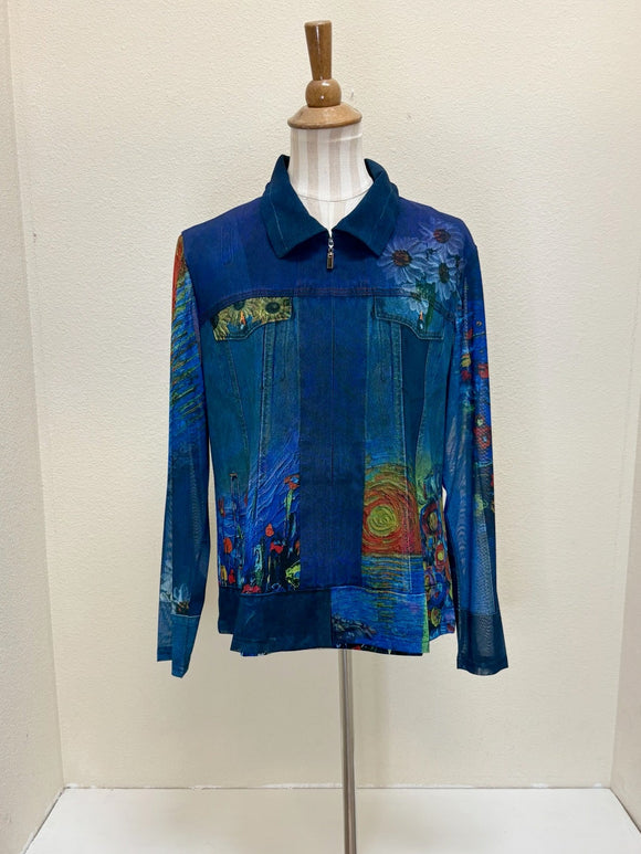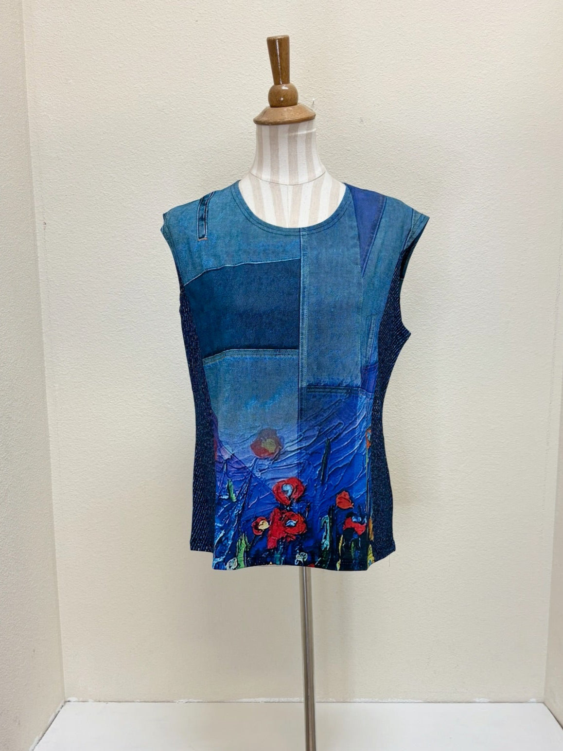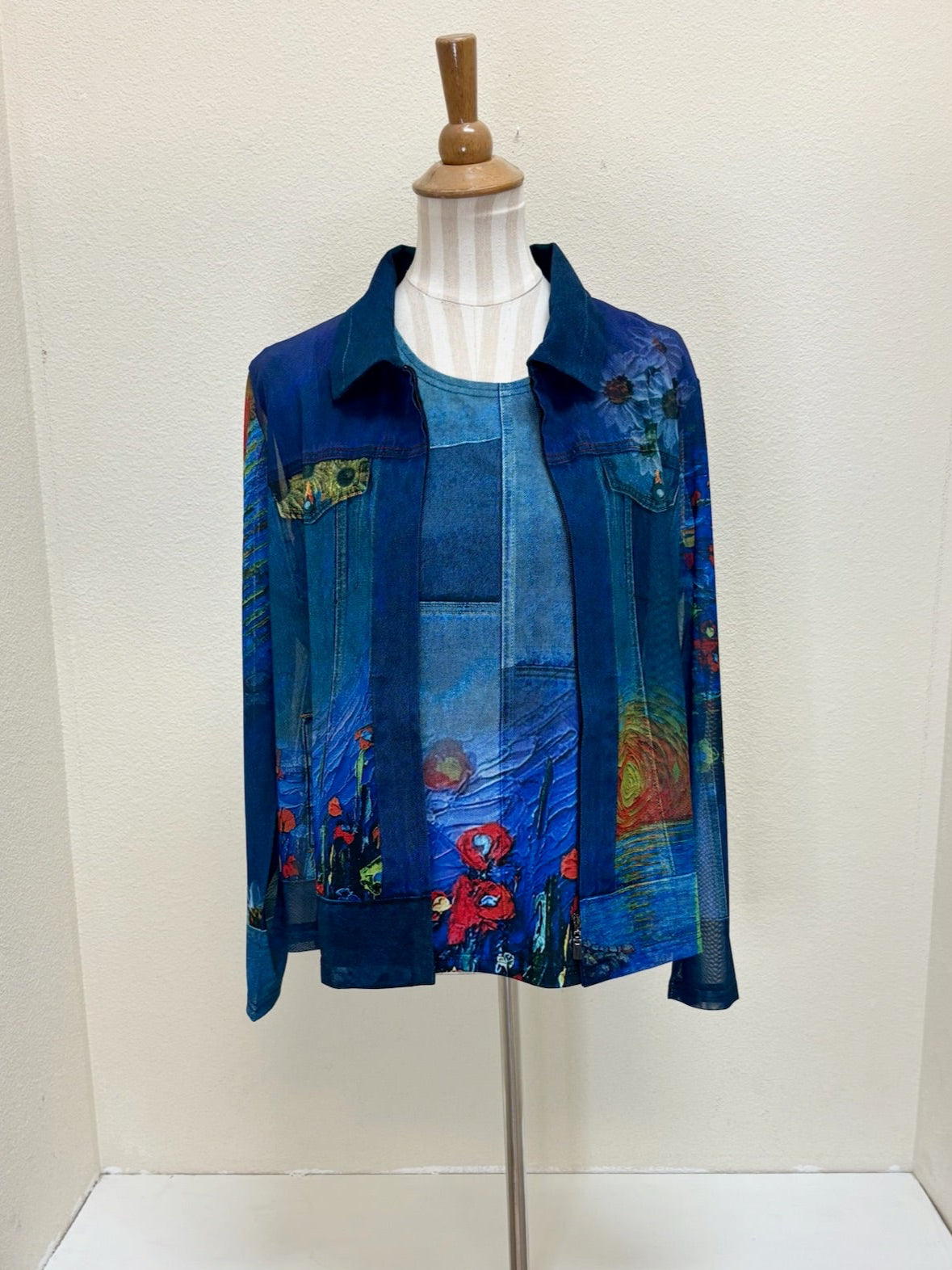 DAMEE FLORAL DENIM MESH TWIN SET- 31415-BLU
