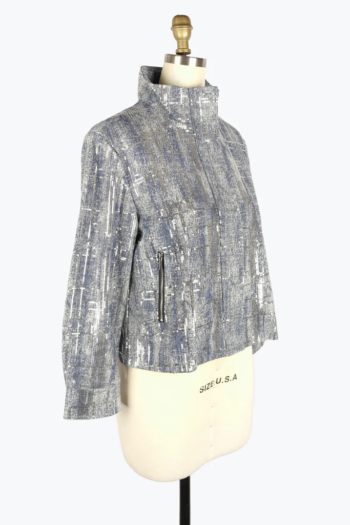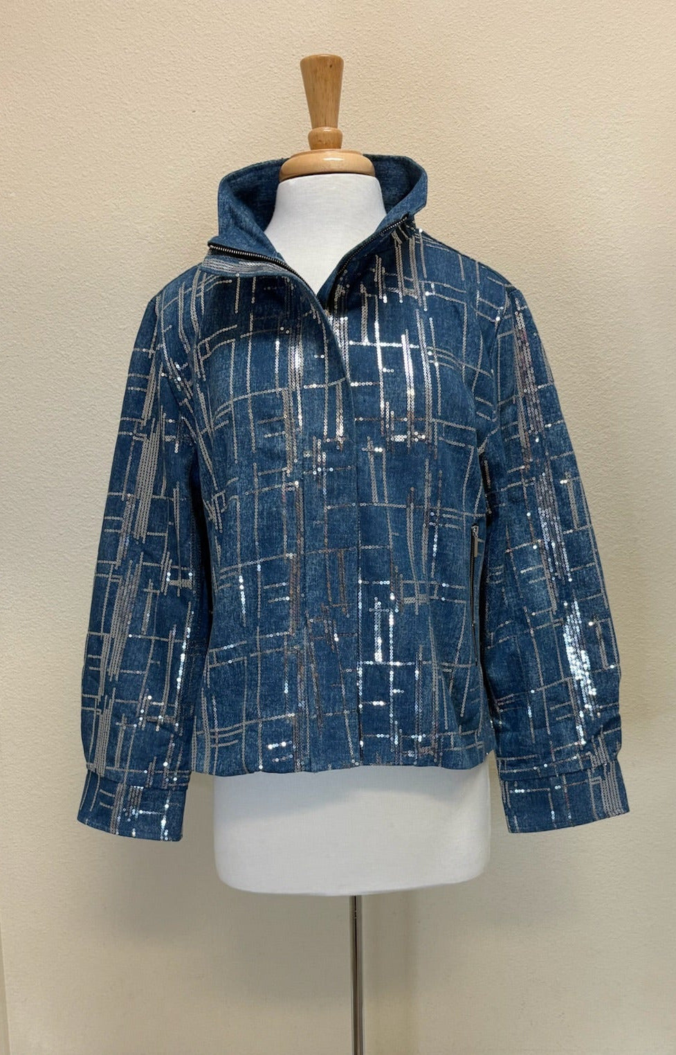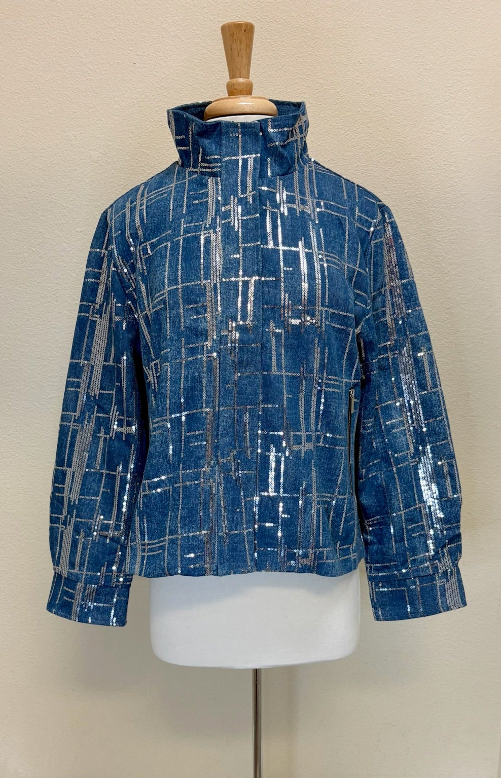 DAMEE SEQUINED DENIM BIKER JKT - 4928 - DNM